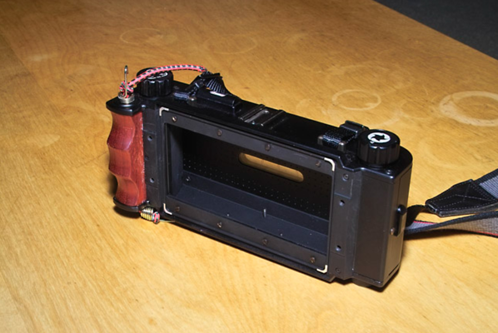 초점유리를 제거한 뒷부분에 파노라마 필름싸이즈 폭6cm정도로 상하를